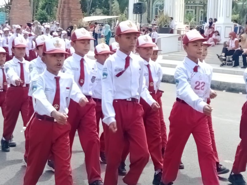 Lihatlah kostum mereka yang rapi, topi merah putih di kepala, serta semangat yang menggema. Inilah wajah masa depan Indonesia—cerdas, berani, dan penuh harapan!"